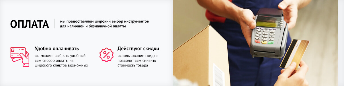 Как только предоплата поступает на наш счёт, заказ отправляет по месту назначения транспортной компанией. При получении вы оплачиваете оставшуюся часть стоимости товара.